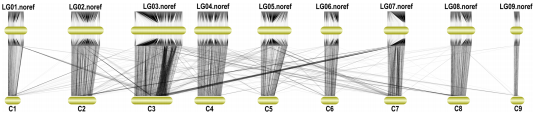 綠豆是豇豆屬中的主要栽培作物,也是我國重要的食用豆類。本研究對RIL群體及其親本進行全基因組重測序,每個RIL系測序深度為4.54×,親本Dahuaye和Jilyu 9-1測序深度分別為20×和24×;利用劃bin策略進行圖譜構(gòu)建,得到1946個bins,使用百邁客作圖軟件HighMap進行圖譜構(gòu)建,總圖距為1060.17cM,平均圖距僅為0.54cM;與參考基因組共線性分析顯示,二者之間具有較高的共線性。基于該圖譜,結(jié)合連續(xù)兩年的表型數(shù)據(jù),對缺刻葉和皺縮葉兩個葉形性狀進行QTL分析;其中,缺刻葉性狀共檢測到8個QTL;皺縮葉性狀在兩個環(huán)境中均檢測到主效QTL。進一步,對定位區(qū)間的候選基因及候選基因在兩親本間的SNP進行了分析。