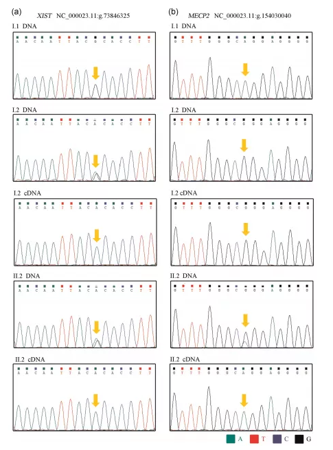 作者的結(jié)果相似,通過結(jié)合RNA-seq和RT-PCR,發(fā)現(xiàn)在非活性X染色體上特異表達(dá)的X-非活性特異轉(zhuǎn)錄物XIST僅在I.2和II.2的Xq28重復(fù)染色體上表達(dá)。這表明Xq28重復(fù)染色體是不活躍的。另外還發(fā)現(xiàn),兩個(gè)女性的Xq28重復(fù)等位基因上的MECP2和IRAK1(受XCI影響的基因)沒有轉(zhuǎn)錄表達(dá)。這解釋了為什么這兩名女性,特別是I.2,是無癥狀攜帶者。同時(shí),作者推測,除了DNA甲基化之外,其他因素也在維持XCI狀態(tài),一種額外的抑制機(jī)制可能發(fā)生在非甲基化X染色體的轉(zhuǎn)錄水平,以抵消MECP2復(fù)制的有害表型效應(yīng)。根據(jù)XCI,作者的發(fā)現(xiàn)為MECP2重復(fù)綜合征知識(shí)及其在女性中的表型后果增加了新的見解,這對(duì)遺傳和產(chǎn)前咨詢具有重要意義。