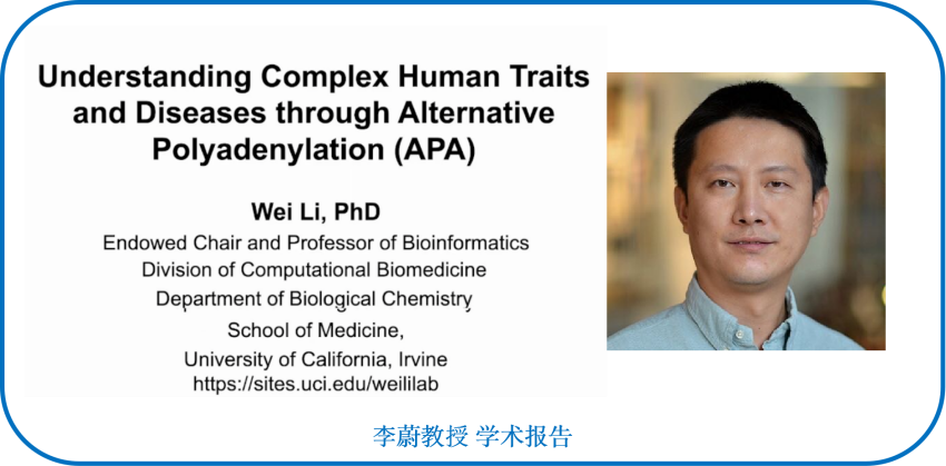 貝勒醫(yī)學(xué)院李蔚教授介紹了Understanding Complex Human Traits and Diseases through Alternative Polyadenylation (APA)。在該項研究中,建立了3’UTR可變多聚腺苷酸化(APA)數(shù)量性狀位點(diǎn)(3’aQTLs)的概念,3’aQTLs圖譜有望將APA作為一種新興的重要分子表型來解釋大部分GWAS(全基因組關(guān)聯(lián)研究)風(fēng)險SNPs,從而為APA和APA相關(guān)易感基因在人類特征和疾病中的遺傳基礎(chǔ)提供重要的生物學(xué)見解。