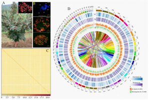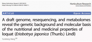 主要內(nèi)容:通過PacBio測(cè)序平臺(tái)完成733.32 Mb“大五星”枇杷基因組的構(gòu)建,并對(duì)52個(gè)枇杷品種(包括16個(gè)白肉變種和36個(gè)黃肉變種)進(jìn)行重測(cè)序分析,同時(shí),使用UPLC-ESI-MS/M系統(tǒng)測(cè)定了的花、葉和根代謝組。通過GWAS分析鑒定了一些與枇杷的果肉顏色關(guān)聯(lián)的SNPs。