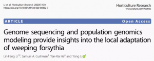 主要內(nèi)容:該研究以藥用作物連翹為研究對(duì)象,通過Nanopore平臺(tái)測(cè)序數(shù)據(jù)組裝了737.47 Mb的高質(zhì)量連翹基因組。并對(duì)15個(gè)連翹自然種群進(jìn)行全基因組比較分析,找到了與本地適應(yīng)相關(guān)的太陽輻射、溫度和降雨等變量相關(guān)候選基因。該研究為連翹從野生種群篩選優(yōu)良種質(zhì)資源提供了遺傳資源和理論參考。