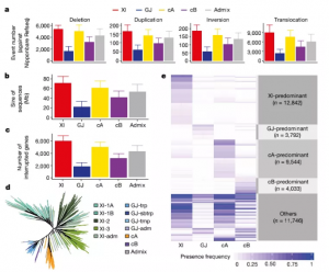 在用于GWAS的標(biāo)記中,最初使用的是SSR標(biāo)記,后來SNP標(biāo)記成為常用標(biāo)記。但是,研究人員逐漸意識到基于SNP標(biāo)記的GWAS分析不足以解釋的群體中全部的遺傳變異。并且,隨著測序技術(shù)的發(fā)展,在人以及諸多動植物中發(fā)現(xiàn)了大規(guī)模的SVs [包括拷貝數(shù)變異(CNV)/存在缺失變異(PAV)和易位/倒置(translocations/inversions)]與疾病、馴化及重要農(nóng)藝性狀有關(guān)。本期推文,我們一起來看一下SVs在動植物群體研究中的進(jìn)展。