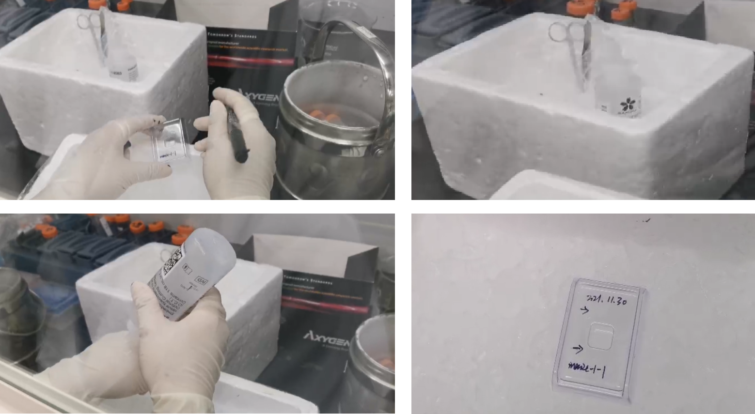 將 OCT 包埋的組織塊或者包埋盒直接保存在–80℃的密封容器中(一般利用錫箔紙包裹整個(gè)包埋盒或者扣下包埋塊將包埋塊放入50 mL離心管密封處理),并做好樣本信息標(biāo)記,利用干冰運(yùn)輸。