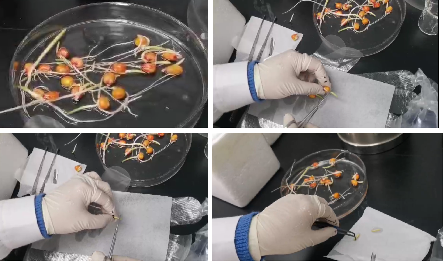:本方法推薦蒸餾水作為植物組織表面清洗緩沖液,不建議直接用1xPBS作為植物組織表面清洗緩沖液,為了維持組織形態(tài)結(jié)構(gòu)原始穩(wěn)定性,高濃度PBS會(huì)導(dǎo)致植物組織細(xì)胞容易收縮變形,選擇蒸餾水可以簡單快速清洗干凈表面污漬。如果采用蔗糖溶液作為冷凍保護(hù)液,可以采取相應(yīng)濃度蔗糖(1x PBS配置)做為植物清洗緩沖液。