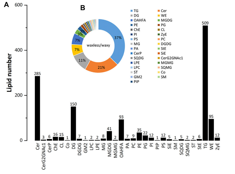 圖1.小麥葉片脂質(zhì)亞類(lèi)數(shù)量統(tǒng)計(jì)圖