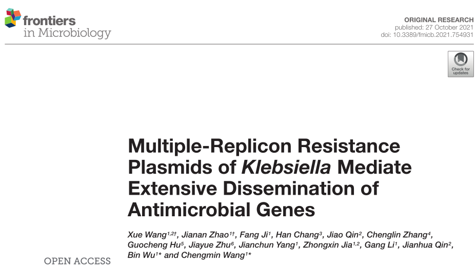 2. Wang X, Zhao J, Ji F, et al. Multiple-Replicon Resistance Plasmids of Klebsiella Mediate Extensive Dissemination of Antimicrobial Genes[J]. Frontiers in microbiology, 2021: 3159.