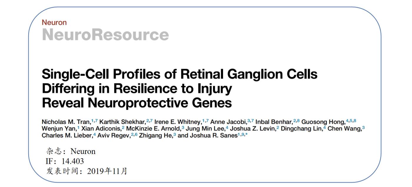 中樞神經(jīng)系統(tǒng)(CNS)無論是急性(例如創(chuàng)傷性損傷)還是慢性(例如神經(jīng)退行性疾?。┑膿p傷,都會(huì)導(dǎo)致不可逆轉(zhuǎn)的神經(jīng)元損害甚至死亡,而那些存活下來的神經(jīng)元有的能長出新的軸突并重新建立突觸連接。該研究通過單細(xì)胞轉(zhuǎn)錄組揭示了與視神經(jīng)擠壓 (ONC)后小鼠視網(wǎng)膜神經(jīng)節(jié)細(xì)胞(RGC)的選擇性恢復(fù)能力相關(guān)的差異表達(dá)程序。
