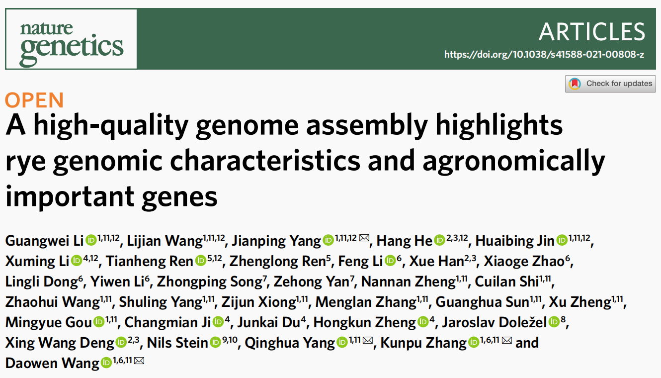 本研究對(duì)我國(guó)栽培的優(yōu)良品種威寧黑麥進(jìn)行了基因組測(cè)序,基因組組裝大小為7.74 Gb,其中93.67%被掛載到7條染色體上,重復(fù)序列占總基因組的90.31%。并基于高質(zhì)量基因組揭示了全基因組基因復(fù)制及其對(duì)淀粉生物合成基因的影響,解析了復(fù)雜儲(chǔ)存蛋白基因座位點(diǎn)、早抽穗性狀的基因表達(dá)特征以及黑麥中與馴化相關(guān)的染色體區(qū)域和基因座。本次研究結(jié)果對(duì)黑麥的基因組特性及其農(nóng)藝性狀調(diào)控基因有了新的認(rèn)識(shí),獲得了對(duì)進(jìn)一步研究黑麥馴化遺傳基礎(chǔ)可能有用的染色體區(qū)域和基因座。威寧黑麥基因組組裝對(duì)于破解黑麥基因組生物學(xué),深化比較谷類(lèi)基因組學(xué)研究,加速黑麥及相關(guān)谷類(lèi)作物的遺傳改良具有重要價(jià)值。