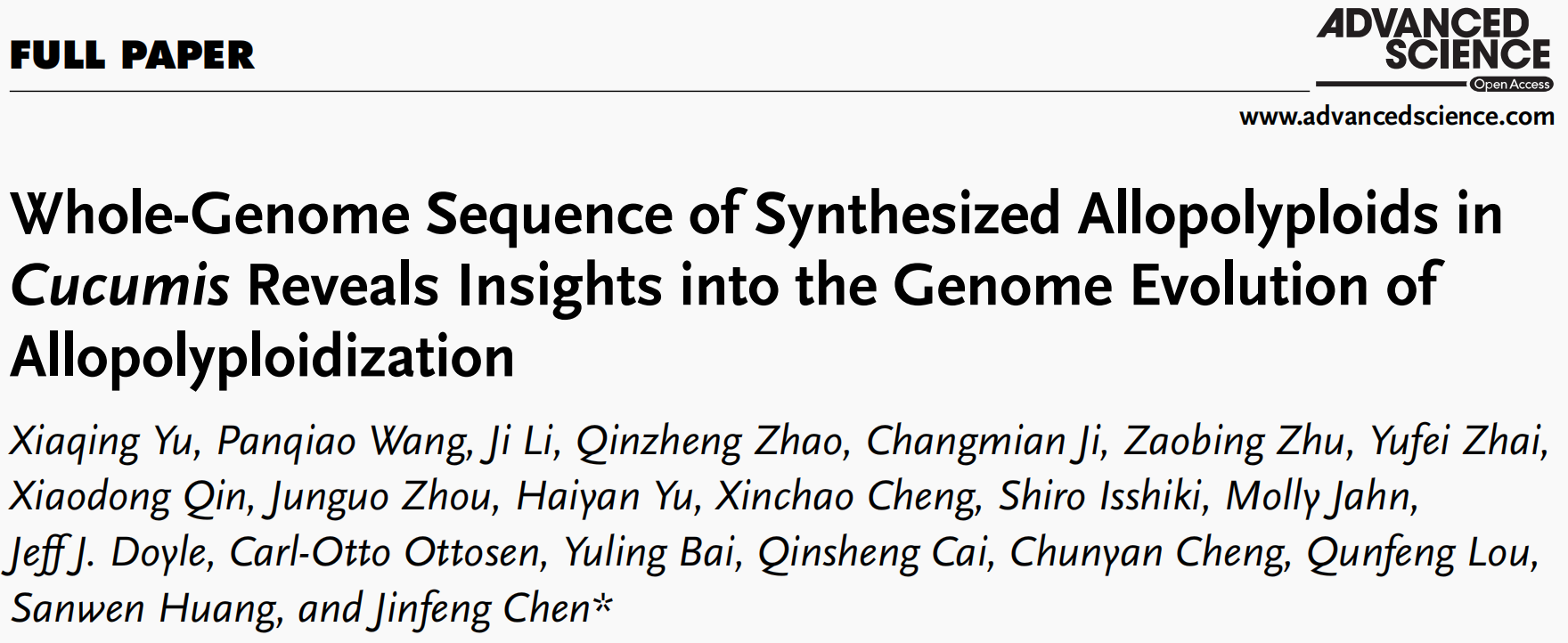 研究團(tuán)隊(duì)將栽培黃瓜(Cucumis sativus L., 2n=14)與野生酸黃瓜(C. hystrix Chakr., 2n=24)進(jìn)行種間雜交,通過(guò)胚胎拯救和染色體加倍,創(chuàng)造了甜瓜屬人工異源四倍體新物種“金瓜”。本研究利用PacBio+BioNano+Hi-C+Illumina等技術(shù)完成了“金瓜”的染色體水平基因組組裝,共組裝獲得530.8 Mb基因組(contig N50=6.5 Mb)將組裝的基因組序列掛載至19條假染色體上,并對(duì)其亞基因組進(jìn)行了√確區(qū)分。揭示并初步闡明了在異源多倍化物種形成三個(gè)階段中,種間雜交的作用顯著,以及亞基因組優(yōu)勢(shì)形成機(jī)制。金瓜不僅表現(xiàn)出明顯的雜種優(yōu)勢(shì),同時(shí)還具有很強(qiáng)的環(huán)境適應(yīng)性,是利用多倍體化開(kāi)發(fā)作物新品種的真實(shí)范例。本研究對(duì)于加強(qiáng)植物多倍化研究及作物育種利用具有重要意義。