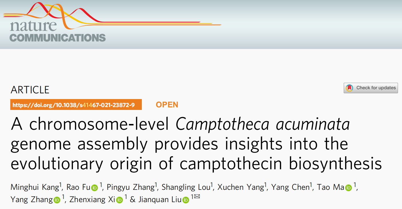 本研究通過(guò)PacBio和HiC技術(shù)組裝注釋了高質(zhì)量染色體級(jí)別的喜樹(shù)基因組,最終組裝大小414.95 Mb,contigN50=1.47 Mb。比較基因組等研究發(fā)現(xiàn),喜樹(shù)堿經(jīng)歷了一個(gè)獨(dú)立的全基因組復(fù)制,從中衍生出的許多基因與喜樹(shù)堿的生物合成有關(guān)。LAMT基因的功能分化和兩個(gè)SLAS基因的正向進(jìn)化都對(duì)喜樹(shù)堿在喜樹(shù)中的生物合成有很大貢獻(xiàn)。該研究揭示了喜樹(shù)中喜樹(shù)堿生物合成通路可能的分子進(jìn)化機(jī)制,發(fā)現(xiàn)高質(zhì)量基因組組裝在識(shí)別新次級(jí)代謝物進(jìn)化起源中的遺傳變化具有十分關(guān)鍵的作用。