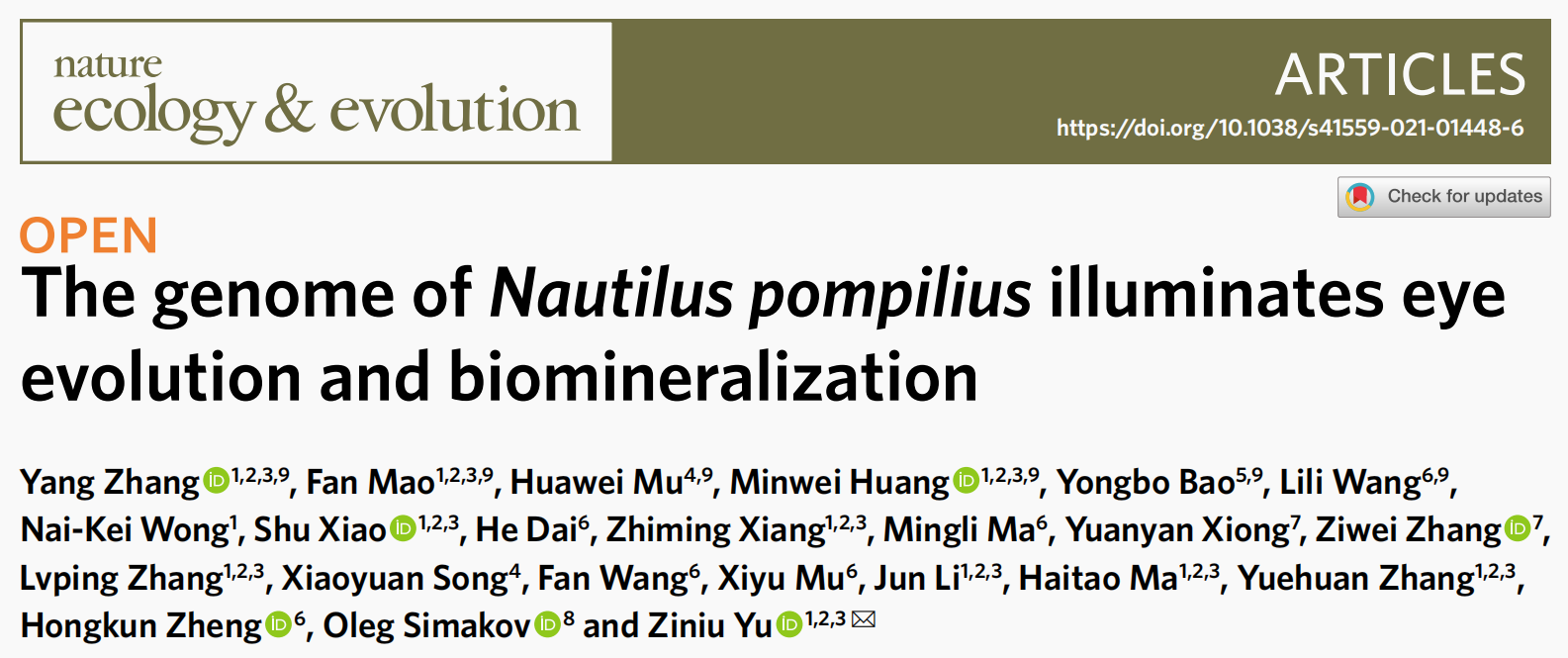 發(fā)表期刊:Nature Ecology & Evolution