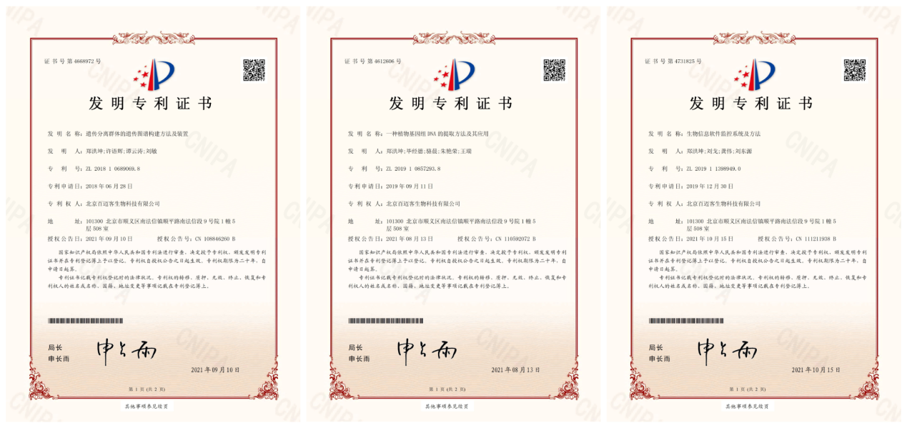 百邁客不斷進(jìn)行新技術(shù)創(chuàng)新研發(fā),解讀基因助力科研,科研成果碩果累累,2021年服務(wù)科研學(xué)者累計(jì)發(fā)表論文累計(jì)IF=3000+,其中IF>10的文章50+篇,并且獲得“遺傳圖譜構(gòu)建”、“植物基因組DNA提取”“生物信息軟件監(jiān)控系統(tǒng)”等3項(xiàng)專著授權(quán)。(部分合作文章展示如下)