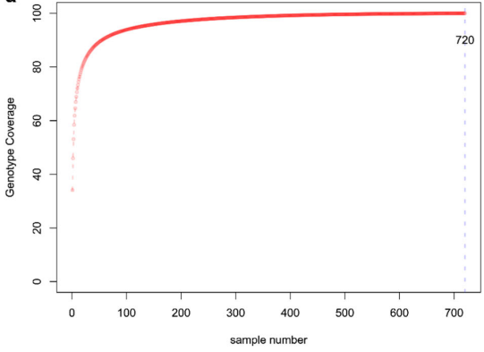 核心種質(zhì)可以最大限度地去除原始種質(zhì)資源中的重復(fù),以最少的種質(zhì)材料代表原始種質(zhì)資源的全部或大多數(shù)遺傳多樣性和地理來源,為當(dāng)前越來越多的種質(zhì)資源收集、評價(jià)和利用帶來了便利,特別是隨著基因組學(xué)的發(fā)展,測序成本的極速下降,使得大規(guī)模群體測序得以實(shí)現(xiàn)。利用高分辨率的分子標(biāo)記,提升遺傳材料間遺傳相似度和雜合度的鑒別能力,從而選擇能夠代表整個(gè)種質(zhì)資源基因多樣性的大小合理的核心種質(zhì)材料,更加有助于種質(zhì)資源的保存、管理、使用。使得我們可以有重點(diǎn)地進(jìn)行優(yōu)異種質(zhì)的研究,結(jié)合GWAS分析、遺傳進(jìn)化分析、QTL定位、特有標(biāo)記開發(fā)等方法進(jìn)一步進(jìn)行基因的挖掘與克隆,提高種質(zhì)資源的利用效率。