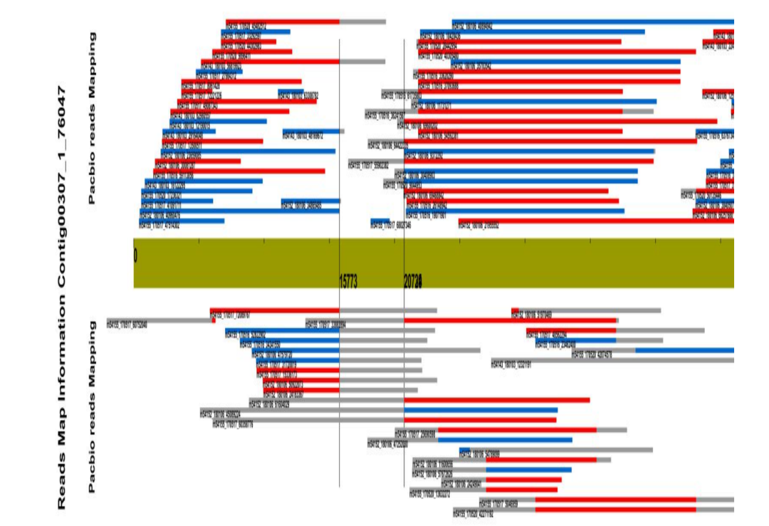 百邁客專利技術《基于三代數據的基因組斷點識別技術》能結合三代測序數據快速方便的判斷基因組序列的組裝錯誤,提升基因組序列z確性,為生物學研究奠定重要的基因組基礎。該專利技術不僅可以判斷基因組上連接錯誤的地方(即斷點),同時可以對錯誤區(qū)域的結果進行作圖,給予研究者直觀的結果展示,從而方便研究者對基因組序列進行進一步改善,為基因組數據分析提供一個有力的工具。