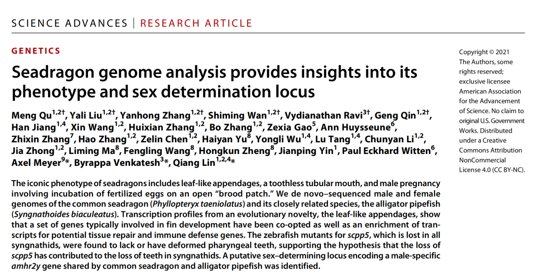 而該項技術也已在多項合作案例中成功引用,如2021年中國科學院昆明植物研究所關于無刺光葉薔薇(月季)基因組學研究成果發(fā)表在國際期刊National?Science?Review(IF:17.275),探究了月季皮刺遺傳調控機制,為更好理解植物新性狀產生與維持機制提供了新視角;如2021年中國科學院南海海洋研究所關于草海龍基因組學研究成果發(fā)表在國際期刊Science?Advances(IF:14.136),揭示了海龍科物種性別決定基因的產生和演化歷程,為海洋魚類的環(huán)境適應性進化研究提供了重要理論依據。