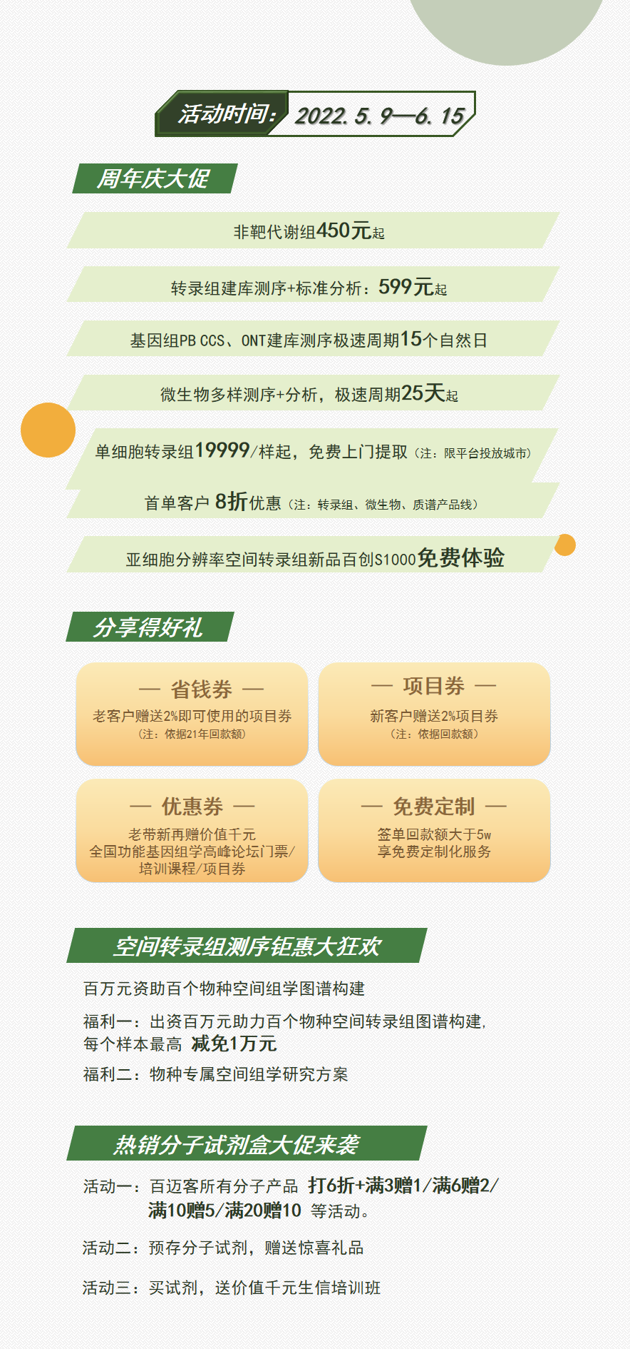 作者: Biomarker 發(fā)布于 2022年5月9日 分類: 市場活動 2022-05-092022-05-10http://m.dgmqj100.com/wp-content/uploads/2020/04/90-90logo.png百邁客生物200px200px 0 百邁客十三周年 十三載,日居月諸,時歲枯榮,我們以人為本,客戶至上。 十三載,不啻微芒,造炬成陽,我們持續(xù)學習,持續(xù)創(chuàng)新。 十三載,青衿之志,履踐致遠,我們目標明確,說到做到。 十三載,一載一成酌,我們拼搏進取,團隊協(xié)作。 百邁客風雨同濟十三載,感恩諸位科研工作者的支持與肯定!“價”與“禮”均為您呈上! 點擊按鈕咨詢 一對一溝通,方便快捷 最近文章《Science》:木食性蟑螂和白蟻的營養(yǎng)特化與社會性演化中國農業(yè)科學院飼料研究所研究成果:腸道微生物產生的腐胺經肝臟代謝為亞精胺后發(fā)揮改善魚體脂肪肝的效應《Science Bulletin》印遇龍院士團隊最新研究成果:史氏甲烷短桿菌通過抑制肝臟酮體代謝,導致出生后生長遲緩