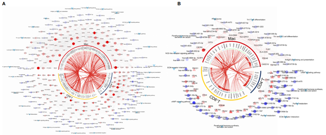 6、HT和GD微環(huán)境中T細(xì)胞和巨噬細(xì)胞的調(diào)控網(wǎng)絡(luò)分析