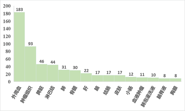 與圖2展示的類似,百邁客實(shí)測項(xiàng)目中血液樣本數(shù)量很多,占比超60%;血液樣本相較于組織樣本,無需進(jìn)行細(xì)胞解離,能夠避免細(xì)胞解離引起的細(xì)胞活性受損、細(xì)胞類型丟失等問題;尤其是臨床樣本,往往涉及到組織樣本獲取難度大的問題,患者治療后腫瘤組織取樣更是很多老師的困擾,因此取配對(duì)的血液樣本就成了一個(gè)合適的替代方案,在臨床監(jiān)測、標(biāo)志物診斷方面更是具有巨大的優(yōu)勢。