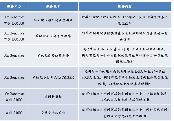表1 百邁客單細(xì)胞空間多組學(xué)技術(shù)服務(wù)列表