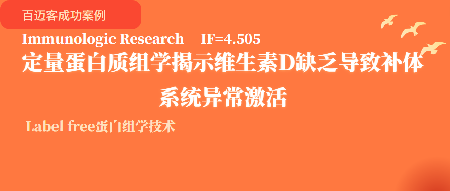 2022年9月30日,銀川市第一人民醫(yī)院謝曉敏教授團(tuán)隊在《Immunologic Research》發(fā)表題為“Vitamin D deficiency leads to the abnormal activation of the complement system”的研究論文,該研究運(yùn)用Laber free蛋白質(zhì)組學(xué)技術(shù)在疾病研究中的應(yīng)用,分析了不同維生素D水平下補(bǔ)體系統(tǒng)蛋白質(zhì)表達(dá)的變化,發(fā)現(xiàn)了維生素D缺乏不僅會導(dǎo)致胰島素抵抗和糖代謝紊亂,還會導(dǎo)致蛋白質(zhì)表達(dá)異常,從而導(dǎo)致補(bǔ)體系統(tǒng)的異常激活。為進(jìn)一步研究維生素D與免疫系統(tǒng)的關(guān)系提供了新的理論基礎(chǔ)。百邁客生物為該研究提供了蛋白組檢測服務(wù)與部分分析工作。
