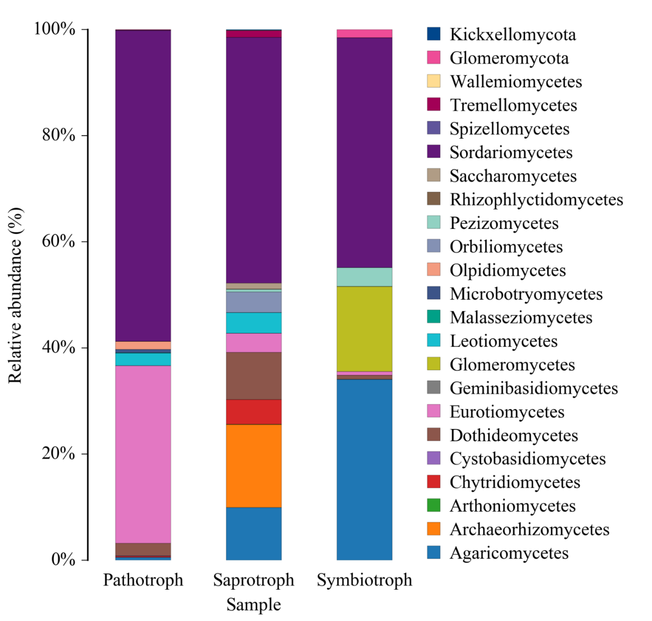 FUNGuild 基于目前已發(fā)表的文獻或權威網站數據,首先根據營養(yǎng)方式(trophicMode分類系統(tǒng))將真菌分為三大類: