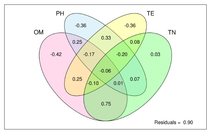 VPA分析(方差分解分析):VPA,全稱Variance Partitioning Analysis,中文稱為方差分解分析,該分析的目的是確定指定的環(huán)境因子對群落結構變化的解釋比例。通常在CCA/RDA的排序分析方法可以得到所有參與分析的環(huán)境因子對群落變化的解釋比例。使用R語言vegan包(version:2.3-0),varpart函數進行分析;分析前首先需要對環(huán)境因子進行一個分類,一般支持2-4類,默認使用大于等于2個環(huán)境因子進行此分析。