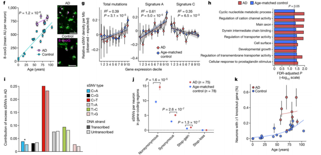 兩種不同的單細(xì)胞全基因組測(cè)序技術(shù)揭示了AD患者大腦中的興奮性神經(jīng)元積累的基因組損傷——以及可能的永久性突變——超過(guò)了僅因衰老而發(fā)生的水平,未來(lái)探索更多的體細(xì)胞突變模式解釋這些氧化性病變?nèi)绾瓮ㄟ^(guò)與衰老過(guò)程中發(fā)生的突變相互作用來(lái)?yè)p害基因組功能。