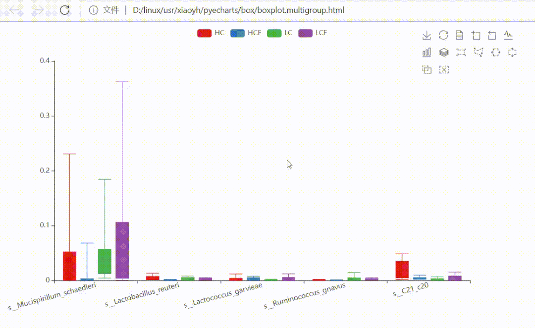 為滿足科研發(fā)文需求,提供更高自由度,更高質(zhì)量的圖片,百邁客生物3月推出交互式動態(tài)繪圖工具,百邁客交互式繪圖,相對常規(guī)的靜態(tài)圖優(yōu)勢在于:不僅保留靜態(tài)圖所有功能,而且支持相似類型圖轉(zhuǎn)換、局部放大、繪圖組刪減、鼠標(biāo)懸空查看源數(shù)值等。已支持的交互式繪圖包括:交互式柱狀圖、交互式箱線圖、交互式聚類熱圖、交互式散點圖。