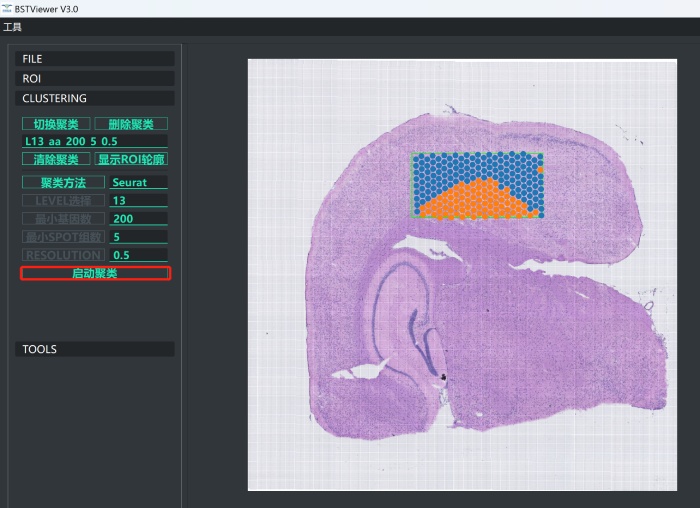 6)最后得到框選到的感興趣區(qū)域的聚類結(jié)果,點(diǎn)擊“ROI”切換為“瀏覽模式”可以通