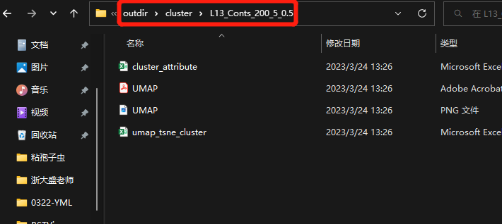 1)cluster聚類結(jié)果保存在“outdir文件夾”中的“cluster”中。包含cluster聚類圖片、barcode信息、UMAP、tSNE聚類結(jié)果。