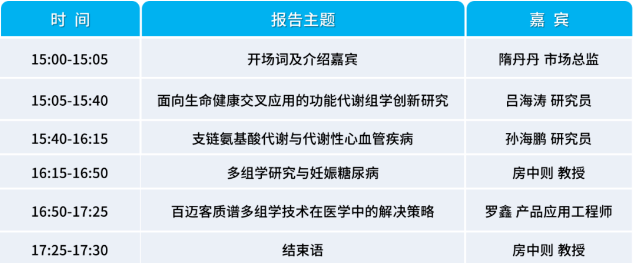 2023年3月22日中國生物物理學(xué)會(huì)腸道菌群分會(huì)房中則副秘書長(zhǎng)牽頭與百邁客生物聯(lián)合舉辦“?質(zhì)譜技術(shù)與多組學(xué)前沿應(yīng)用線上研討會(huì)”。本次研討會(huì)由百邁客醫(yī)學(xué)市場(chǎng)總監(jiān)隋丹丹主持,邀請(qǐng)了上海交通大學(xué)系統(tǒng)生物醫(yī)學(xué)研究院呂海濤研究員,天津醫(yī)科大學(xué)孫海鵬研究員,天津醫(yī)科大學(xué)房中則教授,共同探討質(zhì)譜多組學(xué)技術(shù)在疾病研究中應(yīng)用。