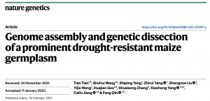 2023年2月21日,中國農(nóng)業(yè)大學秦峰教授團隊在Nature Genetics在線發(fā)表了題為“Genome assembly and genetic dissection of a prominent drought-resistant maize germplasm” 的研究論文。報告了玉米抗旱優(yōu)良種質基因組CIMBL55組裝和注釋結果,揭示其優(yōu)良抗旱性的遺傳基礎。中國農(nóng)業(yè)大學秦峰課題組博士后田甜和博士生王書會為論文共同第一作者,中國農(nóng)業(yè)大學秦峰教授為通訊作者。百邁客完成了PacBio、Hi-C測序及相關分析工作。