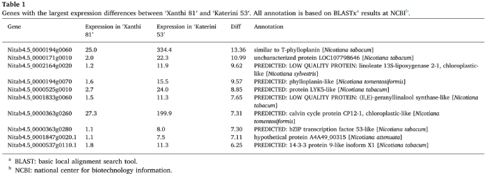 1.1“ Xanthi 81”和“ Katerini 53”中的差異表達(dá)(FPKM> 1)