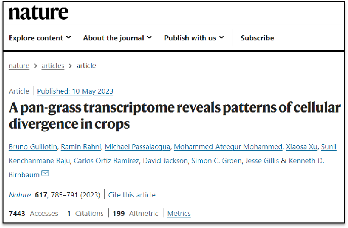 研究對(duì)三種草本作物–玉米、高粱和狗尾草的根進(jìn)行了單細(xì)胞轉(zhuǎn)錄組測(cè)序。結(jié)果表明:部分細(xì)胞類型的轉(zhuǎn)錄組擁有更快的分化速度;全基因組復(fù)制事件提供了豐富的變異區(qū)域,促進(jìn)了細(xì)胞類型的快速進(jìn)化。細(xì)胞間保守的表達(dá)模式證明細(xì)胞類型進(jìn)化能介導(dǎo)作物產(chǎn)生優(yōu)良農(nóng)藝性狀。