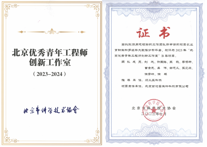 近日,百邁客青年工程師劉東源作為第二十四屆“北京優(yōu)秀青年工程師”稱號的獲得者,代表公司申報“農(nóng)業(yè)育種生物多組學(xué)大數(shù)據(jù)分析平臺”項目,成功入選北京市科協(xié)認(rèn)定的2023年“北京優(yōu)秀青年工程師創(chuàng)新工作室”(以下簡稱“青創(chuàng)室”)。
