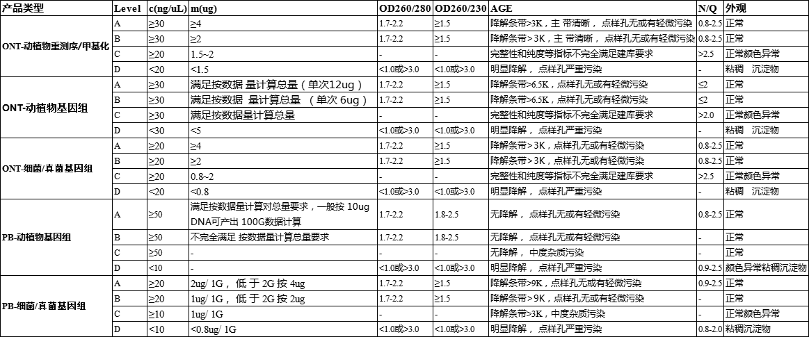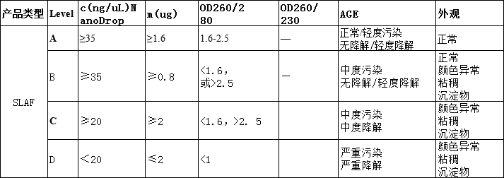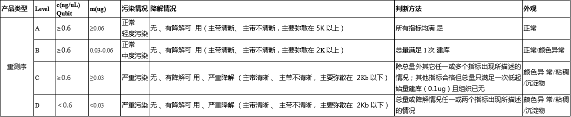 level D:質量完全不滿足建庫測序要求,不建議使用的樣品。