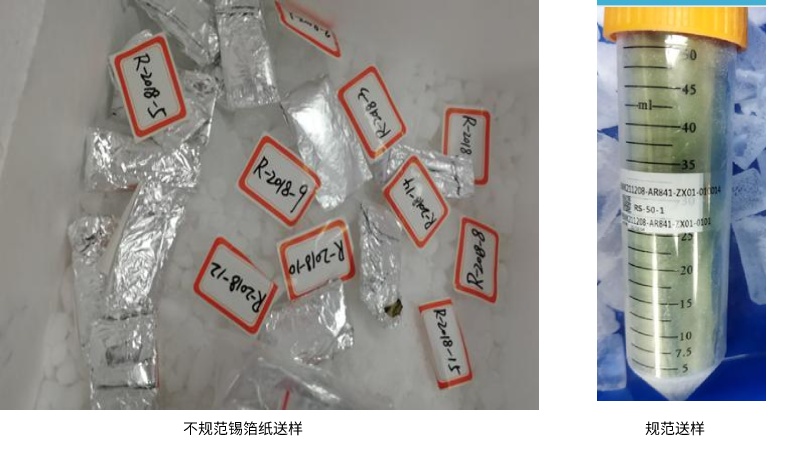 ①一定不要使用自封袋常溫寄送非干燥組織樣,天氣炎熱,高溫下組織樣易腐爛變質, 易產生霉菌,導致提取的核酸中混有污染物種的核酸或提取失敗,影響公司成本的同時 給客戶造成不好的影響。
