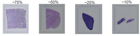 2)10微米切片厚度,組織占包埋塊面積的>1/3,質(zhì)檢量要求~15張(右圖)。