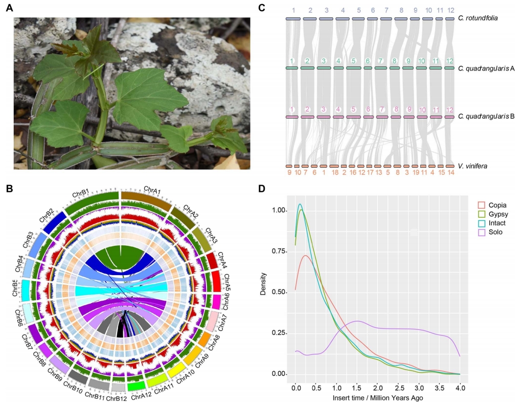 2024年4月,Horticulture Research?在線發(fā)表了中國科學(xué)院武漢植物園等單位合作完成的題為《The?Cissus quadrangularis?genome reveals its adaptive features in an arid habitat》?的研究論文,主要報(bào)道了方莖白粉藤染色體級(jí)別的基因組組裝結(jié)果,并初步解析了其干旱適應(yīng)性機(jī)制。