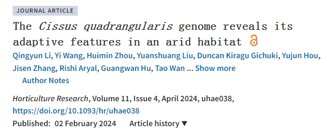 文章標(biāo)題:The?Cissus quadrangularis?genome reveals its adaptive features in an arid habitat