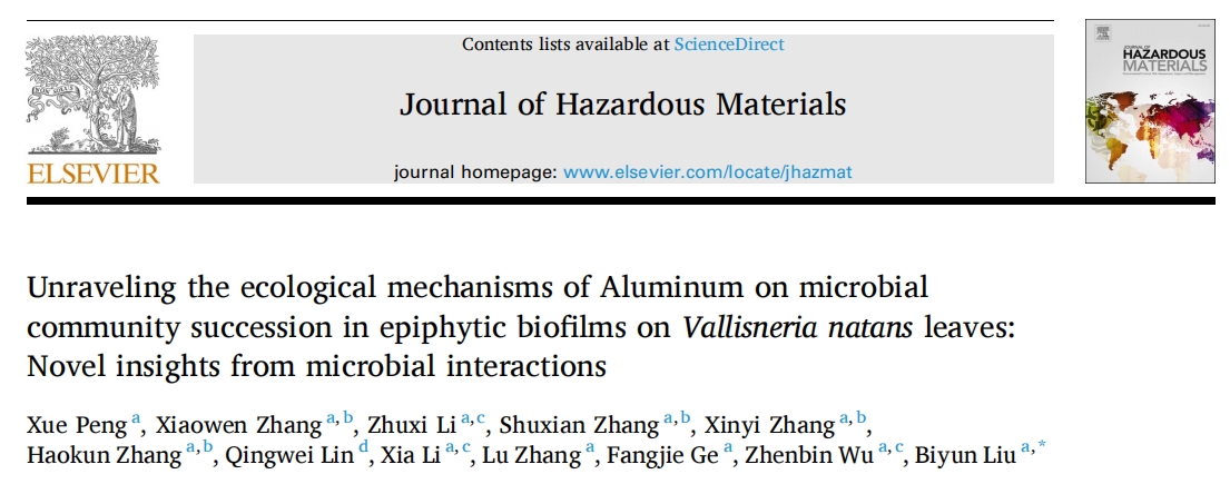 中文標(biāo)題:?揭示鋁對(duì)苦草葉附著生物膜微生物群落演替的生態(tài)機(jī)制:微生物相互作用的新見(jiàn)解