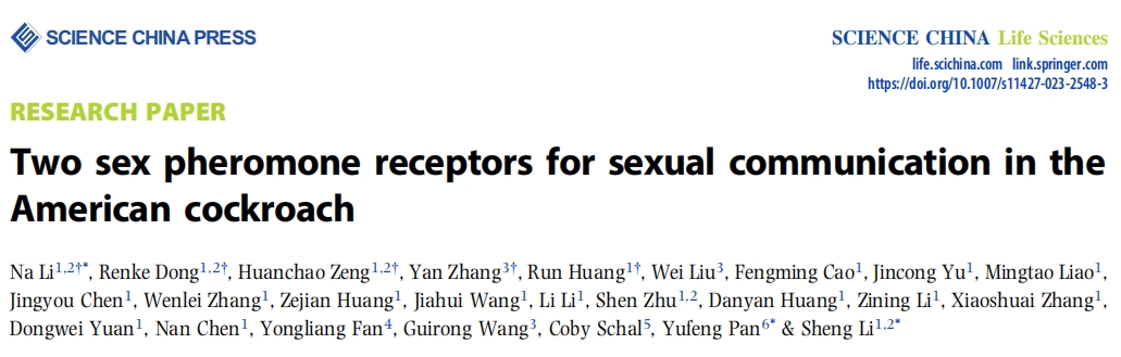 Li N, Dong R, Zeng H, et al. Two sex pheromone receptors for sexual communication in the American cockroach[J].?Sci China Life Sci, 2024,67(7):1455-1467.