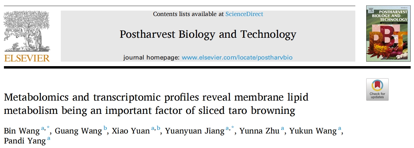 2024年5月9日,韶關(guān)學(xué)院和華南農(nóng)業(yè)大學(xué)在國(guó)際學(xué)術(shù)期刊?Postharvest Biology and Technology?發(fā)表一項(xiàng)重要研究成果,題為:Metabolomics and transcriptomic profiles reveal membrane lipid metabolism being an important factor of sliced taro browning。該研究通過(guò)植物廣靶代謝組和轉(zhuǎn)錄組分析研究了芋頭片在冷藏過(guò)程中的褐變發(fā)展及潛在的褐變機(jī)制。這項(xiàng)研究有助于我們了解鮮切食品的褐變機(jī)制,為未來(lái)的研究和減輕冷藏條件下切片芋頭褐變的潛在策略提供寶貴的見(jiàn)解。
