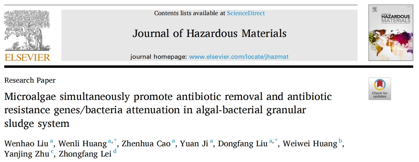 中文標(biāo)題:微藻促進(jìn)ABGS中抗生素去除和抗生素抗性基因/細(xì)菌衰減