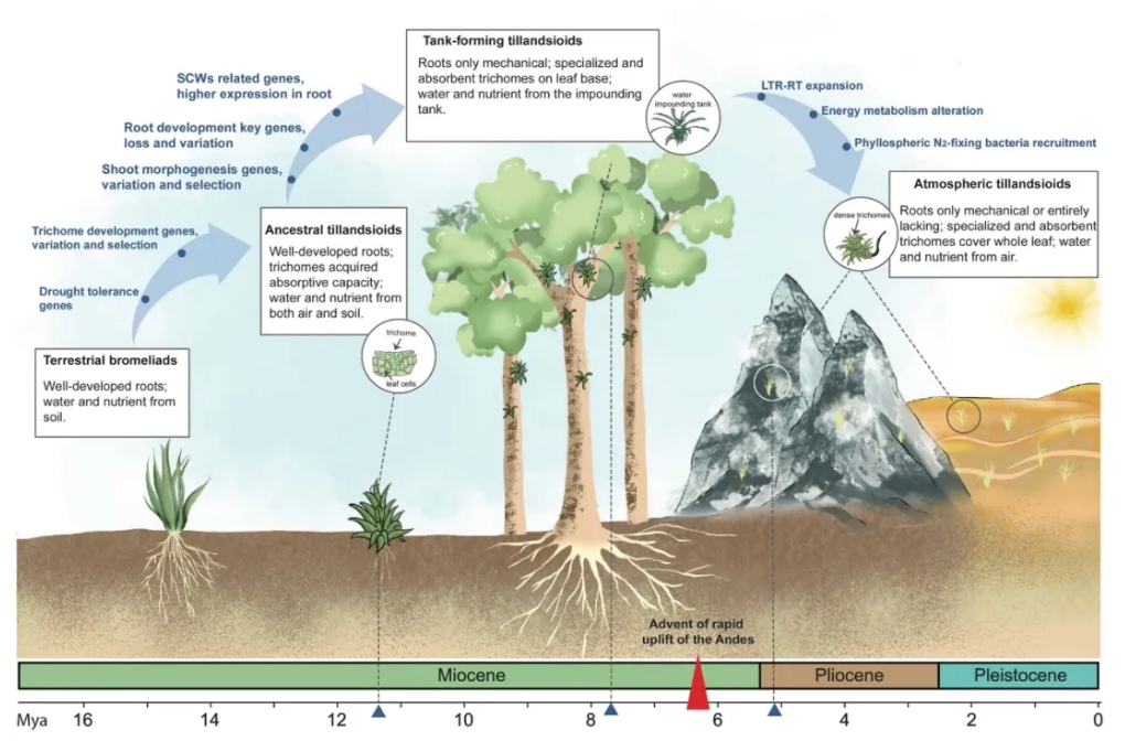 圖8-空氣鳳梨陸生到空生的進(jìn)化歷程圖