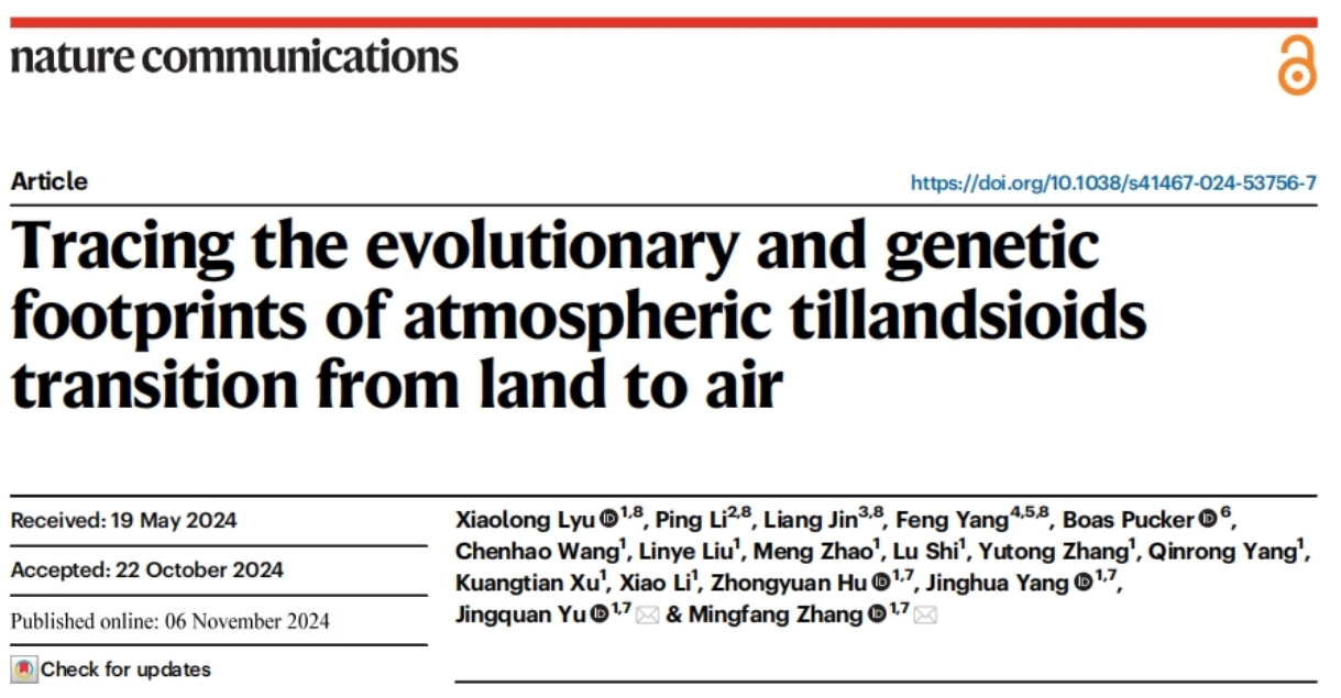 文章標(biāo)題:Tracing the evolutionary and genetic footprints of atmospheric tillandsioids transition from land to air