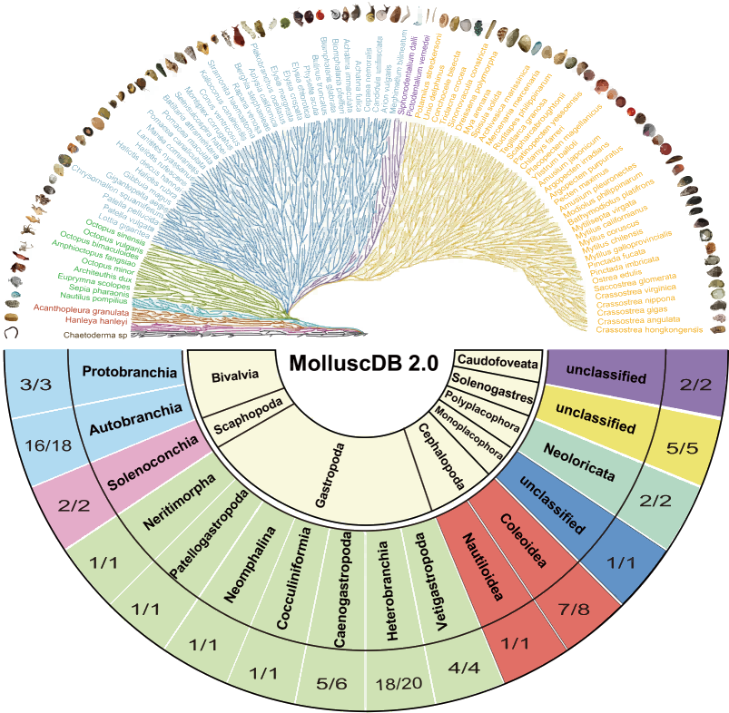 圖2-MolluscDB 2.0數(shù)據(jù)庫(kù)物種分類(lèi)和覆蓋情況總覽