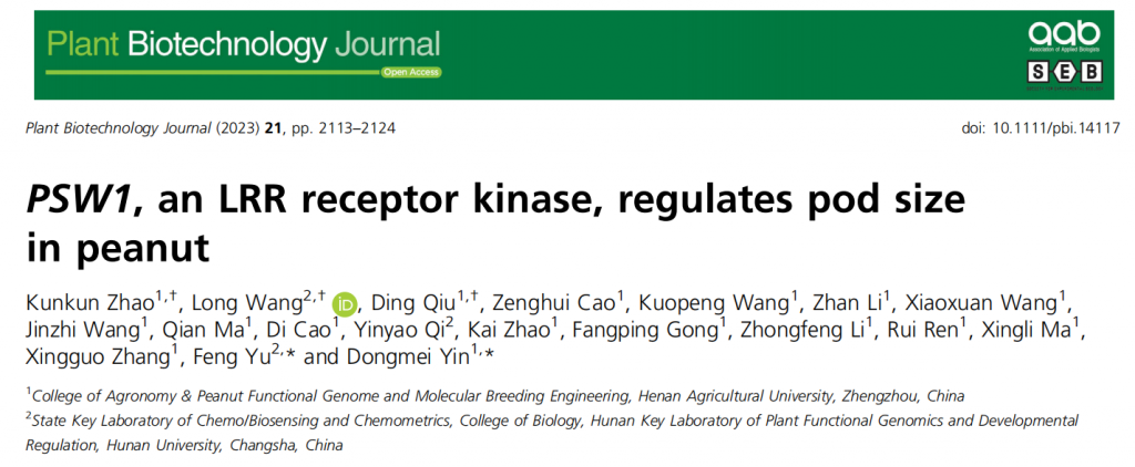 PSW1編碼一個(gè)LRR – RLK蛋白激酶,等位基因PSW1HapII賦予了PSW1更高的表達(dá)水平和對(duì)其輔助受體AhBAK1更強(qiáng)的親和力,以上調(diào)PSW1 – based途徑,調(diào)節(jié)花生莢果大小。此外,PSW1HapII的過表達(dá)增加了多種植物的種子/果實(shí)大小。