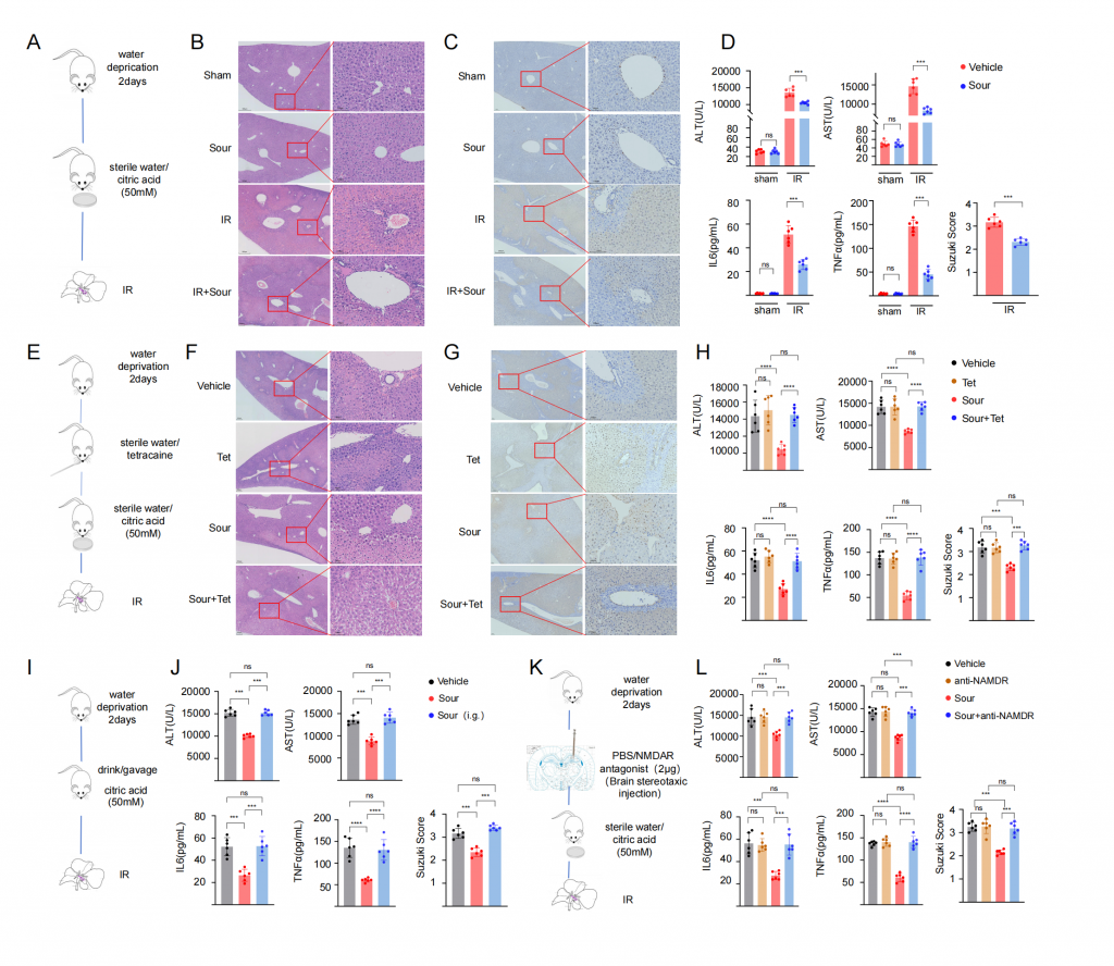 圖1-酸通過神經(jīng)減輕小鼠肝臟缺血再灌注損傷