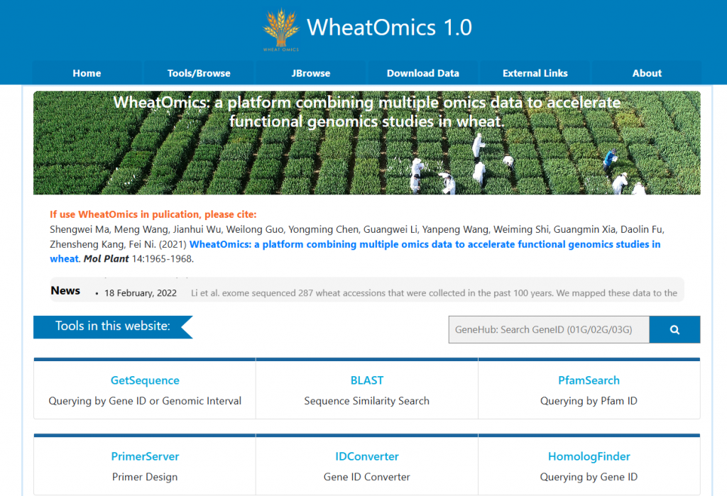☆?小麥組學數(shù)據(jù)在線平臺WheatOmic:實現(xiàn)了對多套麥族物種基因組、轉錄組、變異組、突變體庫外顯子組、表觀修飾組等大數(shù)據(jù)的可視化,并具有擬南芥/水稻-小麥同源基因鑒定、基因共表達網(wǎng)絡構建、蛋白互作、轉錄因子結合位點分析等多個分析工具。